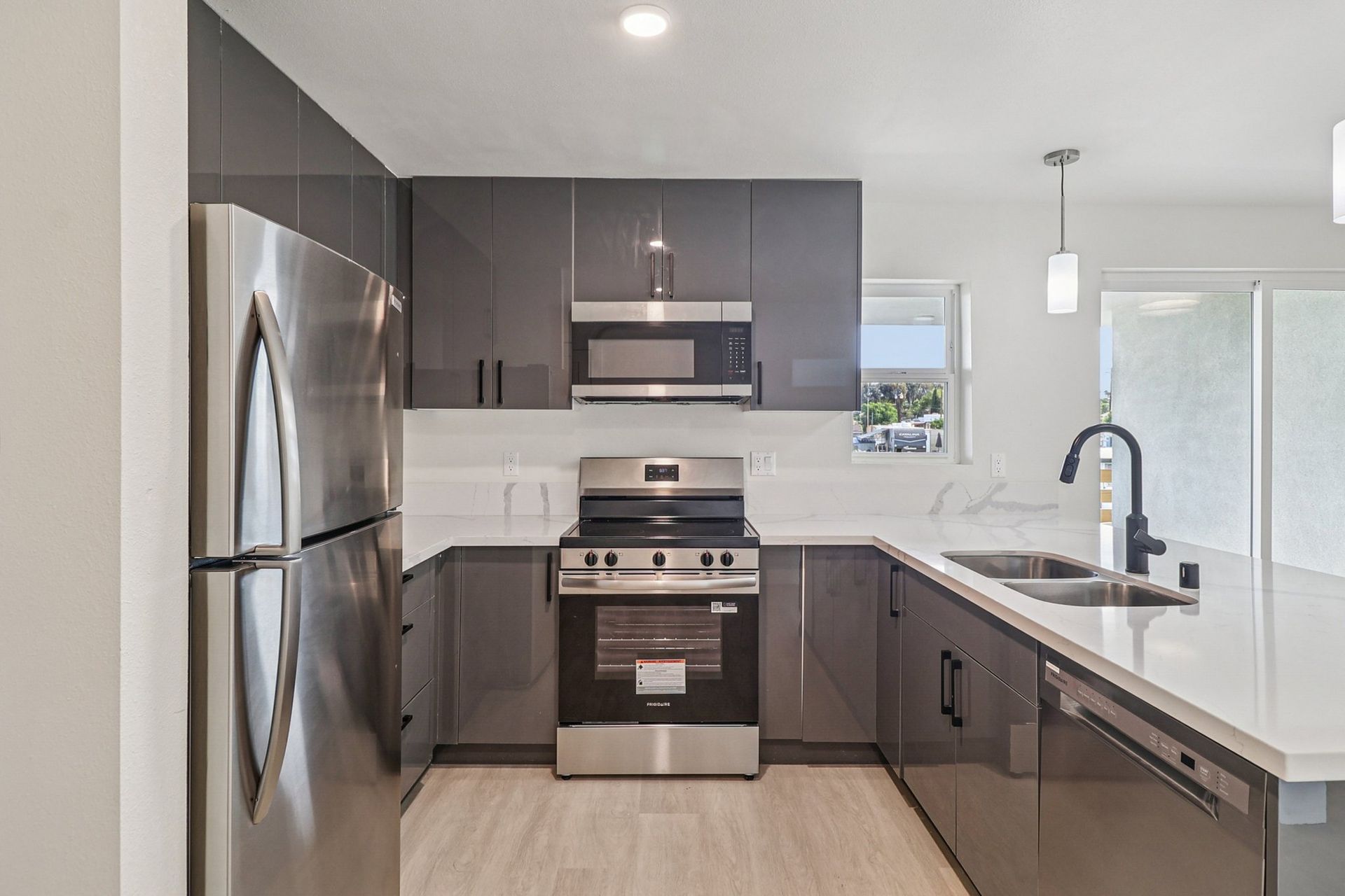 Each home features designer kitchens with quartz countertops, stainless steel appliances and in-unit laundry. The community also offers gated access, parking, and EV charging stations to meet the needs of today’s modern renter.